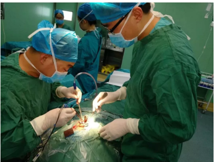 在手术中,见金属异物穿破颞骨,自颅底刺入脑内约0.5—1cm,自刺入处避开面神经延长切口长约5cm,咬除损伤处颞骨约1.5*2cm,完全游离金属异物后,予以拔除,仔细止血,反复消毒,颅底硬膜破口予以人工硬膜修复;手术最终顺利完成,刘小明也脱离了危险。